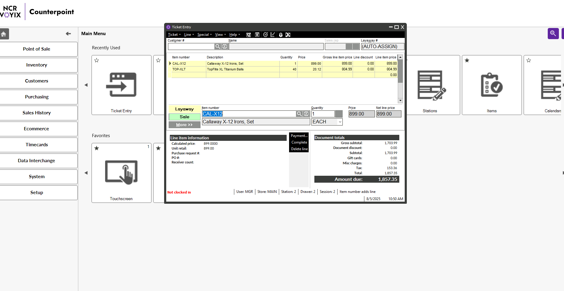 Key Concept: Layaways work exactly like orders in Counterpoint, with the main difference being the line type you select when creating the transaction.